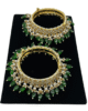 Pair of kundan bangles with lock and pearls comes with 3 different material Ruby, Emeralds and just Pearls.