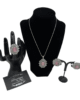 Silver pendant set with matching earrings and adjustable ring comes in 2 different stone colors, Chain is also included.