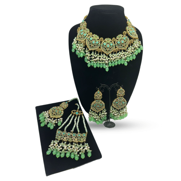 Delicately designed polkee set with flower pattern and pearls hanging